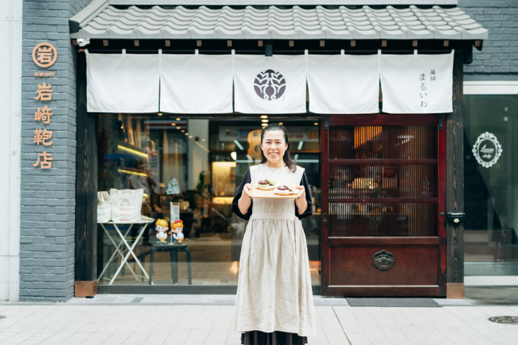 馬具店として創業し、鞄店として上通で長く営業を続ける老舗「岩崎カバン店」の五代目。伝統ある鞄店の経営を担いながら、新規事業として和菓子ブランド「菓舗まるいわ」を立ち上げる。看板商品「あんさんどら」を中心に、熊本の新たな手土産づくりと地域ブランドの発信に取り組んでいる。